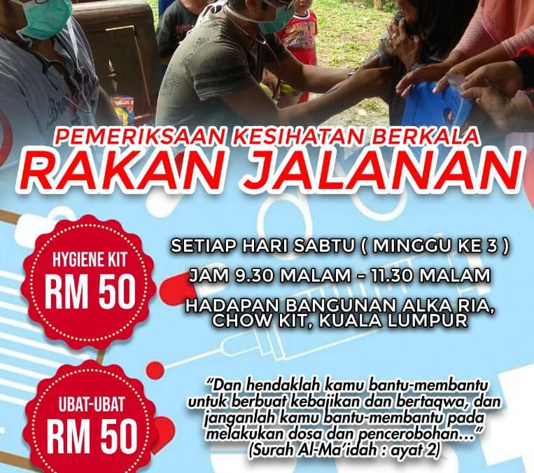 - Menyediakan kemudahan pemeriksaan kesihatan secara berkala utk Saudara2 Rakan Jalanan kita.