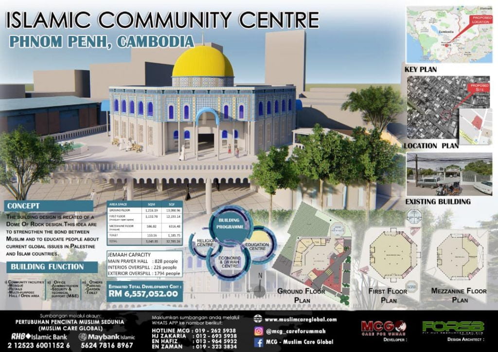 1️⃣. Memberi peluang umat Islam di Kemboja menzahirkan syiar islam di kawasan ibu kota mereka melalui masjid yang berperanan sebagai pusat pembangunan rohani, pendidikan, dakwah dan pembangunan ekonomi ummah.